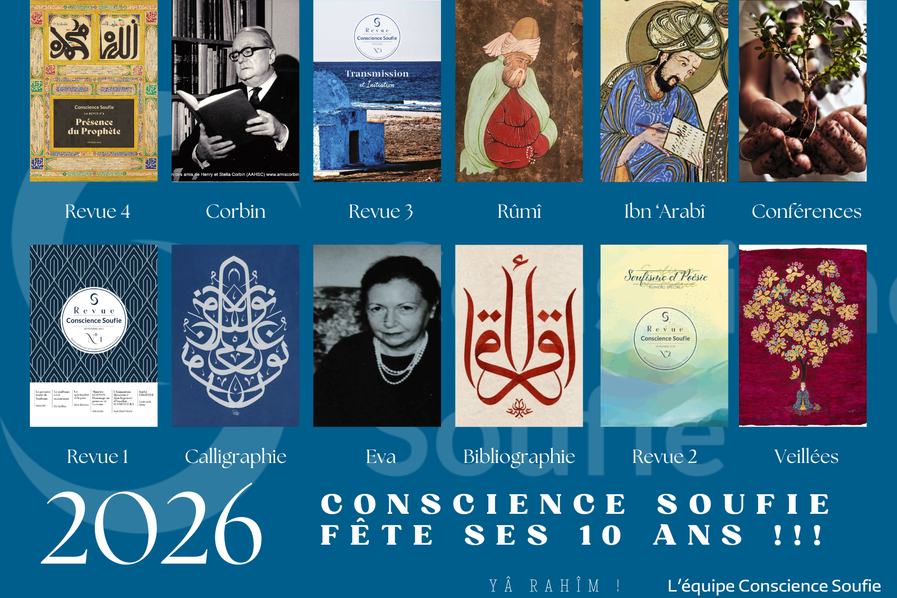 Conscience Soufie a été fondée il y a 10 ans, et l’équipe qui gère l’association désire célébrer cet événement en lui consacrant deux journées : samedi 9 mai et dimanche 10 mai 2026. Cela aura lieu, comme les séminaires précédents, au Forum 104, rue de Vaugirard à Paris.